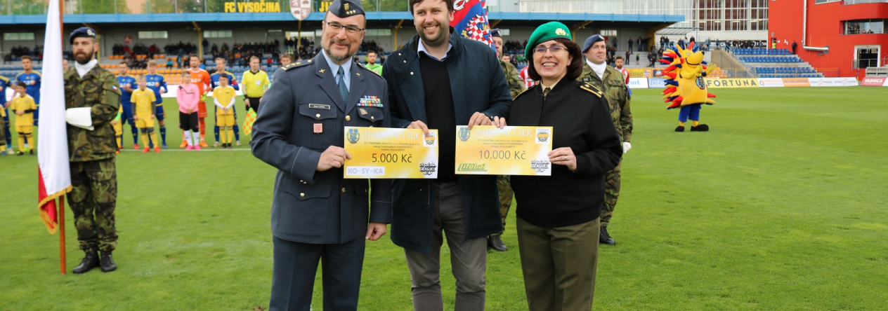 Po nástupu mužstev na hřiště předsedkyně Výboru Vojenského fondu solidarity brigádní generálka Lenka Šmerdová převzala z rukou ředitele klubu FC Vysočina Jana Staňka šek věnovaný Vojenskému fondu solidarity ve výši 15.000 Kč. Ze základny se předání účastnil náčelník štábu 22. základny vrtulníkového letectva plukovník Aleš Cápal. Snahou členů jihlavského fotbalového klubu je poděkovat všem, kteří každodenně nasazují své životy pro druhé. Vybranou částkou se tak chtějí podílet na zkvalitnění životů vojáků, jejich rodin nebo pozůstalých, kteří se ocitli v tíživé situaci, ať už ze zdravotních či sociálních důvodů.
