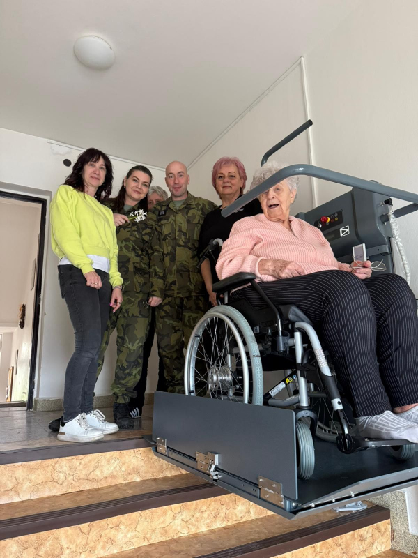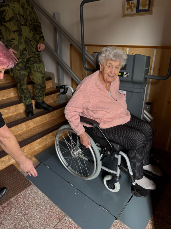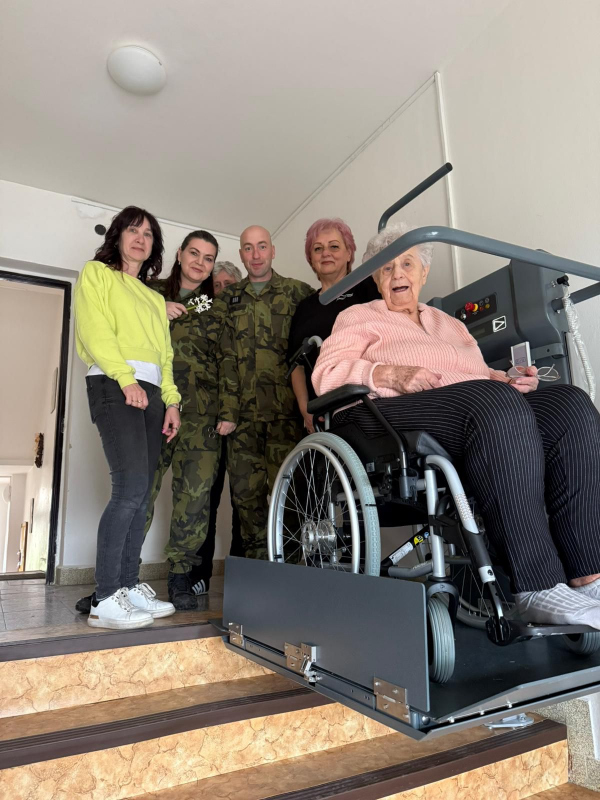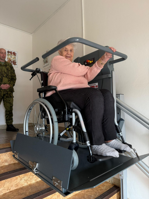 Vojenský fond solidarity proto paní Milatové v rámci programu „Výbava“ poskytl 360 000 Kč na pořízení a instalaci šikmé zvedací plošiny, která jí umožní bezbariérový přístup z bytu ven. Díky tomu se jí otevírá možnost vrátit se zpět do běžného života mimo její domov.